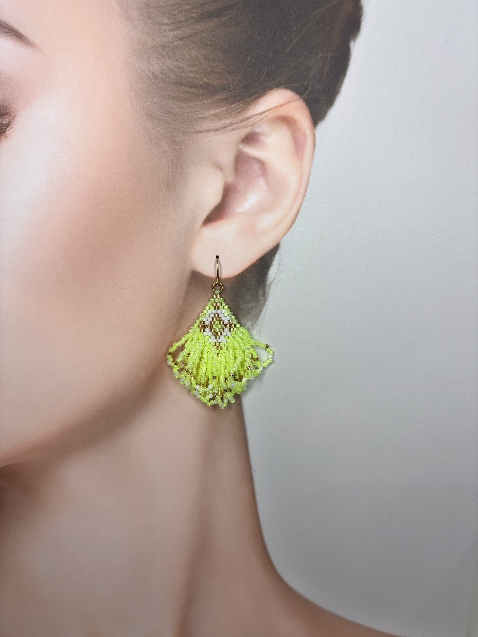 オルテガフリンジのフリンジ部分がボリュームアップのピアスです。