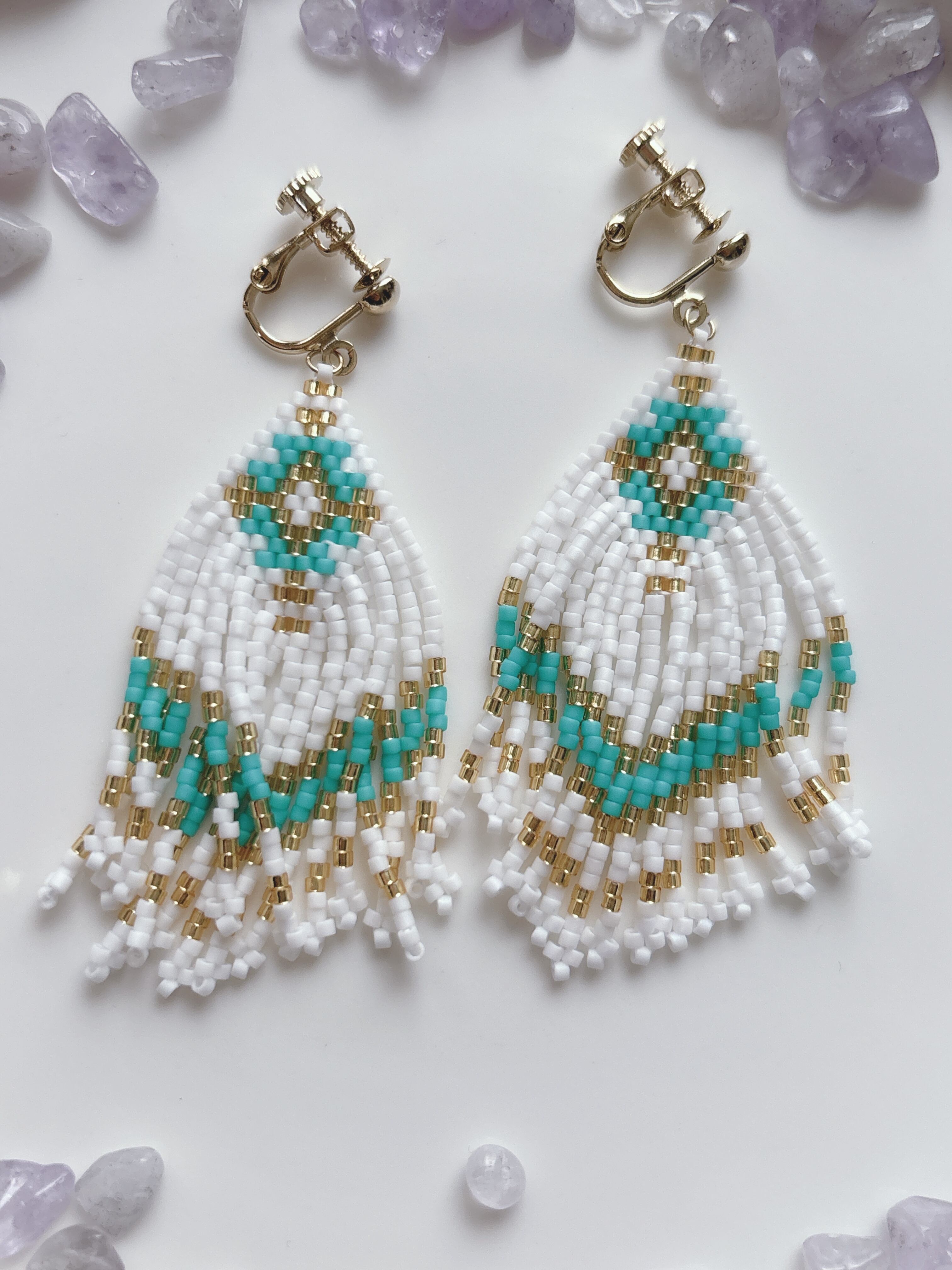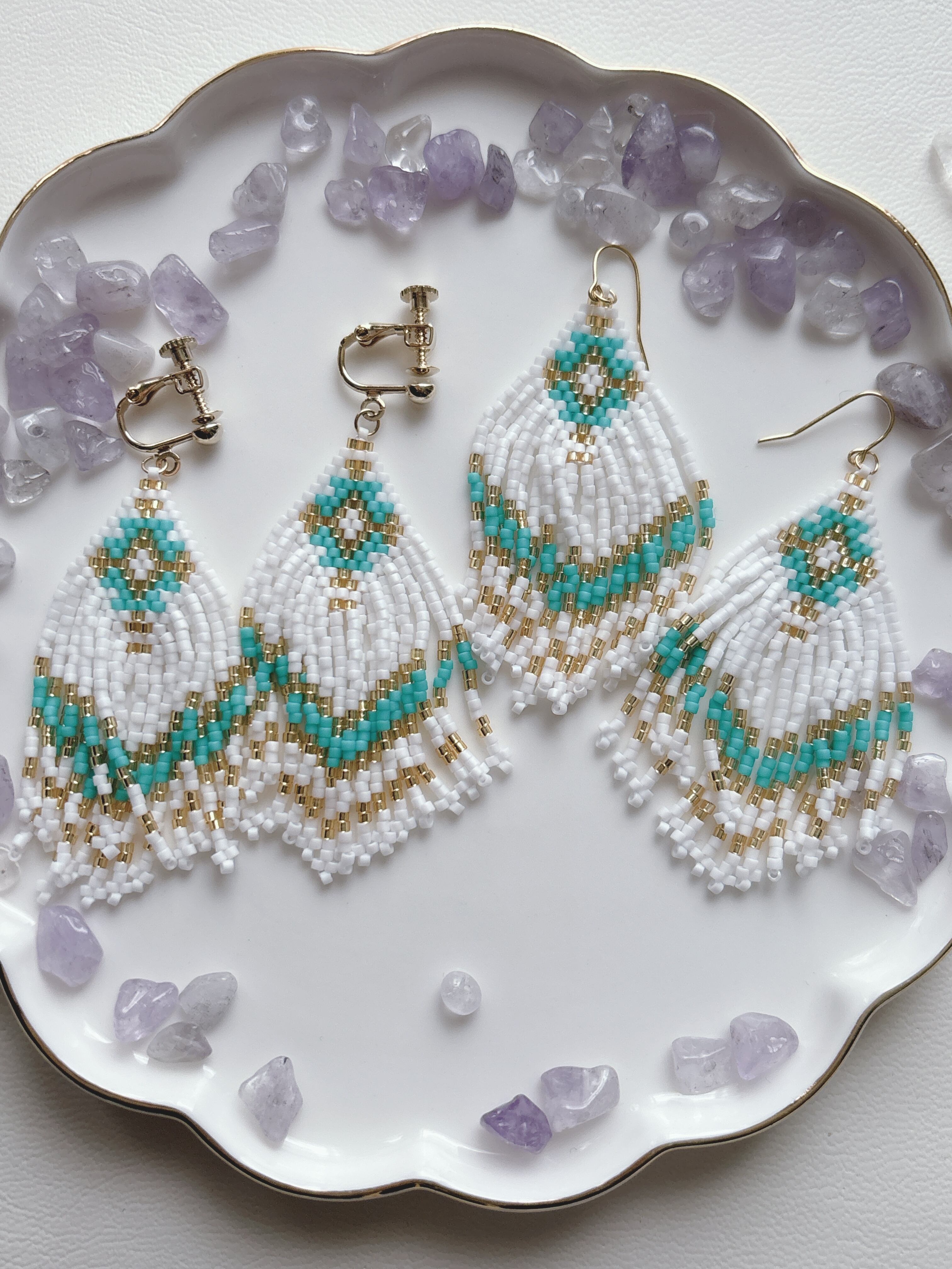 オルテガフリンジのピアスとイヤリング。